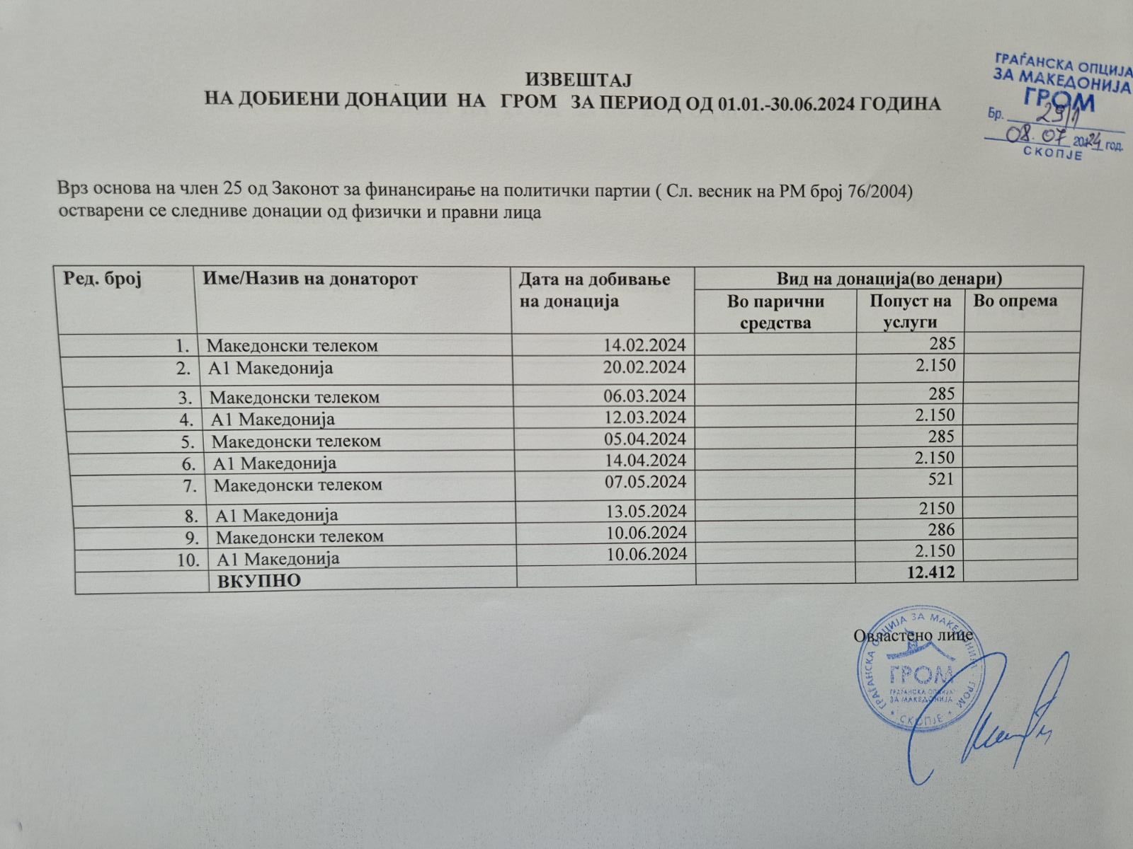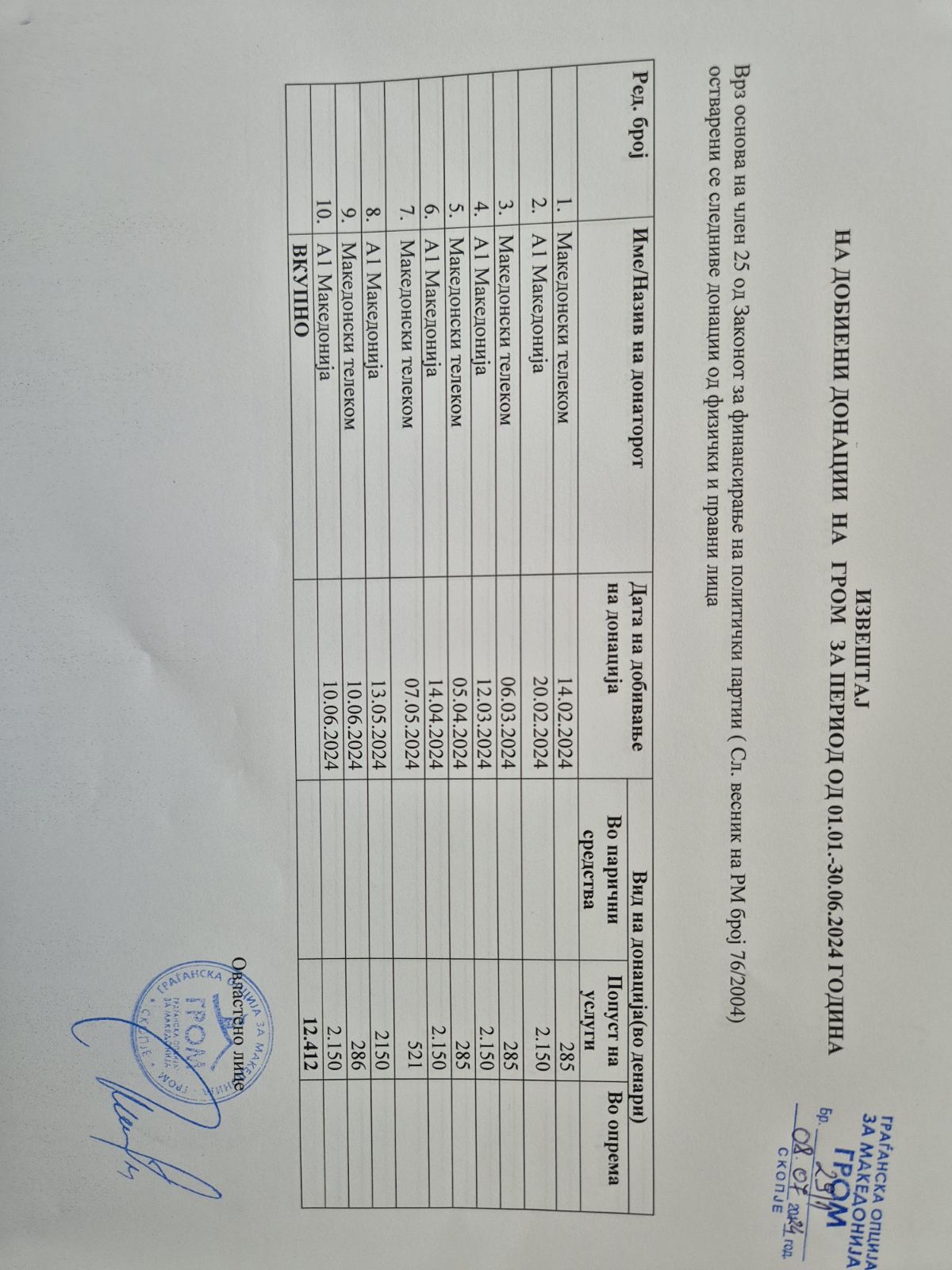 Извештај на добиени донации за период 01.01-30.06.2024 година Споделете го линкот на социјалните мрежиFacebookGoogleTwitterLinkedin